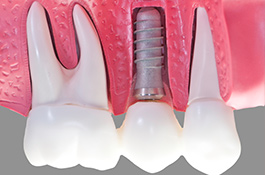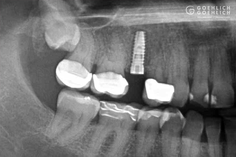 Als Implantat bezeichnet man in der Zahnmedizin eine künstliche Zahnwurzel, die nach Verlust eines eigenen Zahnes als Ersatz eingebracht wird. Das Implantat dient als Basis bzw. Verankerung einer festsitzenden Krone. Geht nur ein Zahn verloren, dient das Implantat zum Schluss der Lücke, ohne dass eine Brücke angefertigt werden muss und dafür die vielleicht intakten Nachbarzähne abgeschliffen werden. Damit schonen wir die umgebenden Zähne. Spätfolgen des Zahnverlustes, wie Kiefergelenkprobleme, Zahnwanderungen oder Karies können vermieden werden. Sind bereits mehrere Zähne verloren gegangen, die nur durch eine Teil- oder Vollprothese ersetzt werden können, ermöglichen wir durch das Einbringen mehrerer Implantate wieder einen festsitzenden Zahnersatz.